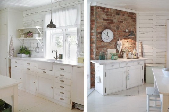 This beautiful romantic white house is located in Norway. The house is furnished with a young family with children's house is white, which is traditional in Scandinavia. The theme of pink, the roof will be in, but it is not so clear, it is soft pastel. Inside is decorated with panels and furniture is largely white and pastel colors, but also the tree. A beautiful wooden beams and panels similar to the village, where some of us stopped in summer. Simple wooden flooring, rough stone walls, antique furniture and large windows create a charming atmosphere of a sweet, quiet and relaxing, perfect for growing children.
